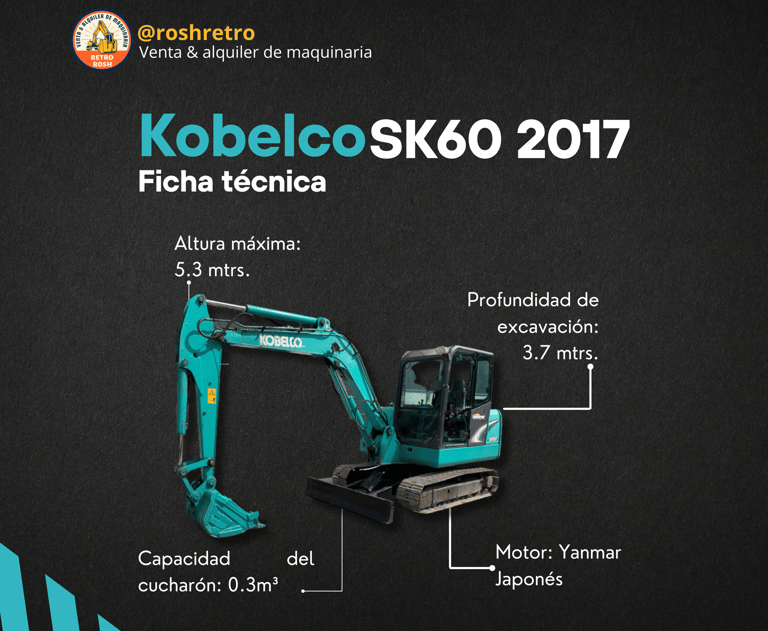 La KOBELCO SK 60 es una excavadora compacta muy eficiente y versátil. Con su potente motor y su avanzado sistema hidráulico, puede realizar fácilmente diversas tareas de excavación. El SK 60 está diseñado para trabajar en espacios reducidos, lo que lo hace ideal para obras de construcción urbanas. Tiene una estructura fuerte y duradera, lo que garantiza confiabilidad y longevidad. También se prioriza la comodidad del operador, con una cabina espaciosa y ergonómica que minimiza la fatiga durante largas horas de operación. El SK 60 está equipado con características de tecnología avanzada, como un panel de control fácil de usar y un sistema de monitoreo confiable, lo que mejora la productividad y la seguridad. En general, la KOBELCO SK 60 es una excavadora fiable y eficiente adecuada para una amplia gama de proyectos de construcción.